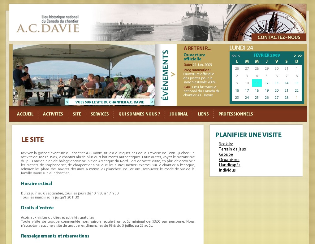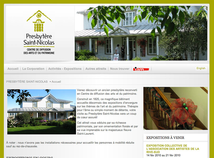 Vers le site Presbytère Saint-NicolasEn activité de 1829 à 1989, situé à quelques pas de la Traverse de Lévis-Québec. Le chantier abrite plusieurs bâtiments authentiques avec leurs activités organisées sur les lieux : expositions, visites guidées, événements, activités familiales.