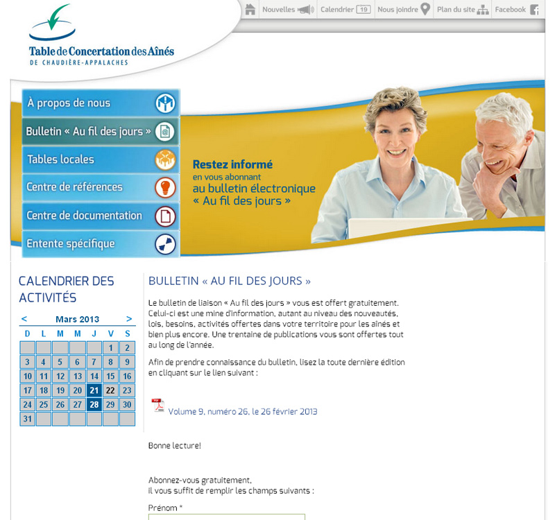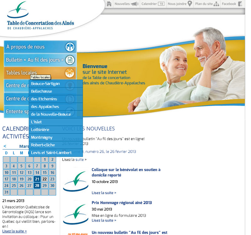 Lien vers le siteLa Table de concertation des aînés de Chaudière-Appalaches a pour mission de rechercher le mieux-être des aînés par l’échange, le partage, la concertation et le partenariat.