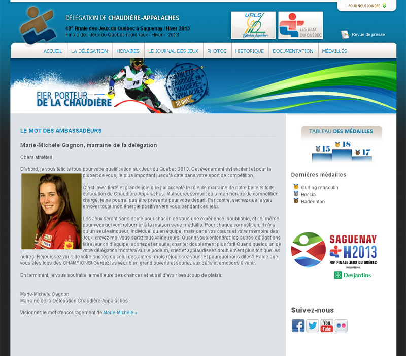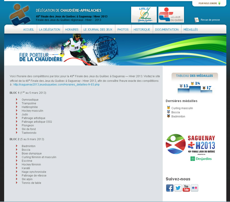 Les Jeux du Québec régionaux de SPORTSQUÉBEC visent la participation du plus grand nombre d’athlètes et de sports et la Finale vise le cheminement de l’athlète vers l’excellence. Site de la délégation de Chaudière-Appalaches.
