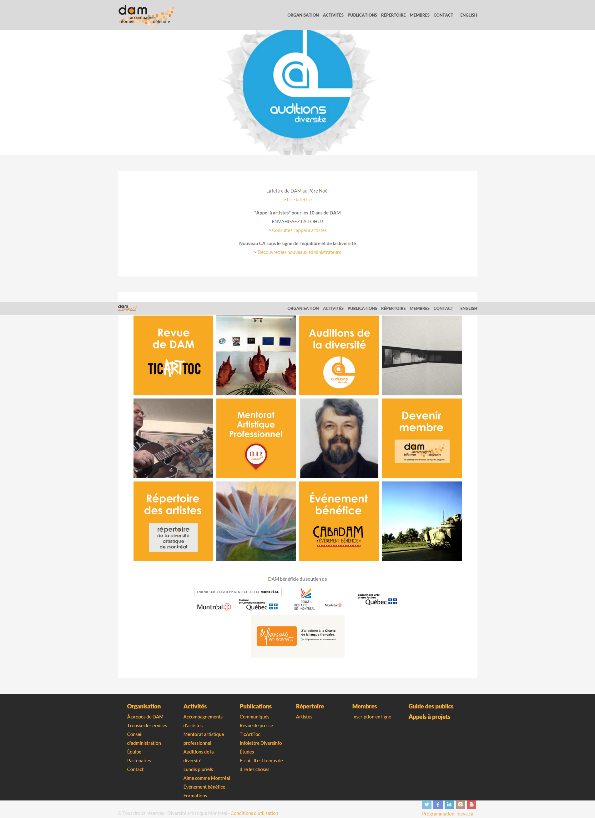 Depuis 2006, Diversité artistique Montréal (DAM) a pour mission de promouvoir la diversité culturelle dans les arts et la culture en favorisant la reconnaissance et l’inclusion de tous les artistes et des pratiques artistiques dans les réseaux professionnels, les institutions culturelles et les circuits de diffusion à Montréal.